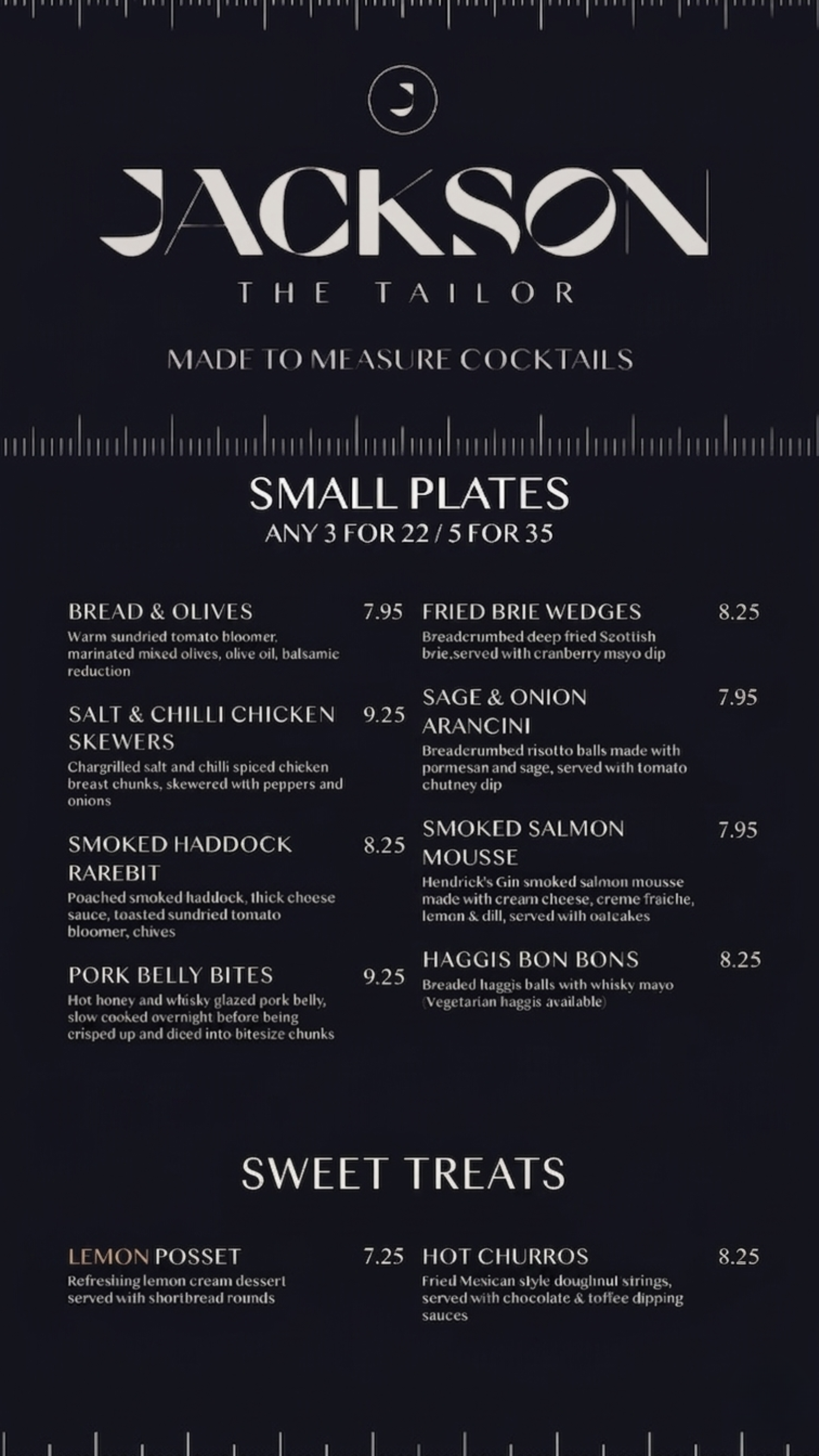 This is our aim with Jackson the Tailor – the bar incarnation; to create a suave and comfortable space to enjoy carefully crafted cocktails and drinks. Curated with the same skill, care and craftmanship as the suits of yesteryear.